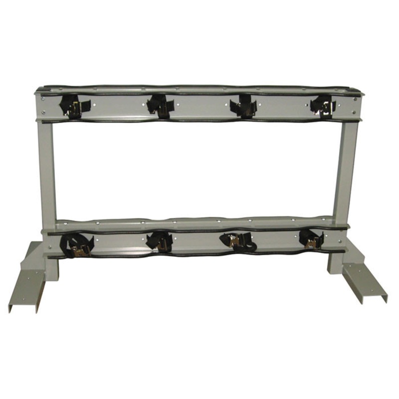 Two heavy-duty polypropylene support straps, 1.5- x 54-in (38-mm x 1372-mm) and rated at 1138-lb (516-kg), feature steel cinch buckle and hold individual cylinders securely against integral bracket. For an improved level of safety for any installation, all brackets include openings to retrofit secondary support chains, one set for each cylinder strap location.