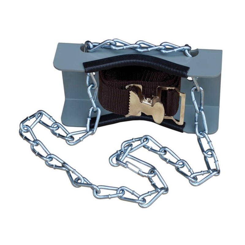 Cylinder support brackets provide a quick and easy solution for storing gas cylinders when space is at premium. Constructed from heavy gauge, powder-coated steel to ensure long service life and chemical resistance. Heavy-duty polypropylene support straps, 1.5- x 54-in (38-mm x 1372-mm) and rated at 1138-lb (516-kg), feature steel cinch buckle and hold individual cylinders securely against bracket. Welded and plated, heavy-duty size 2/0 steel chains with twist link allows links to lay flat against the cylinders, enabling a tighter fit and preventing damage to required labeling.