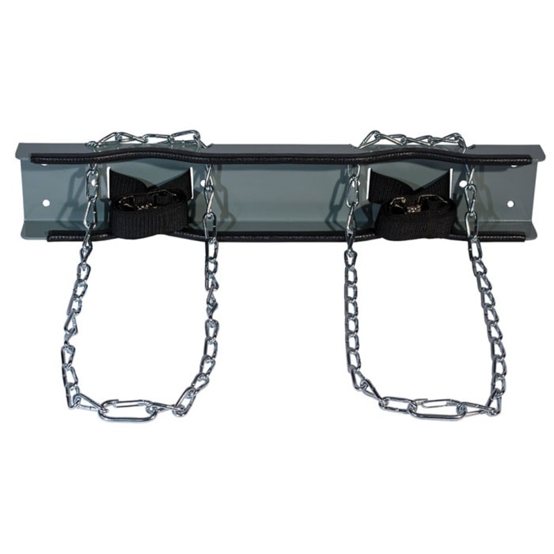 Cylinder support brackets provide a quick and easy solution for storing gas cylinders when space is at premium. Constructed from heavy gauge, powder-coated steel to ensure long service life and chemical resistance. Heavy-duty polypropylene support straps, 1.5- x 54-in (38-mm x 1372-mm) and rated at 1138-lb (516-kg), feature steel cinch buckle and hold individual cylinders securely against bracket. Welded and plated, heavy-duty size 2/0 steel chains with twist link allows links to lay flat against the cylinders, enabling a tighter fit and preventing damage to required labeling.
