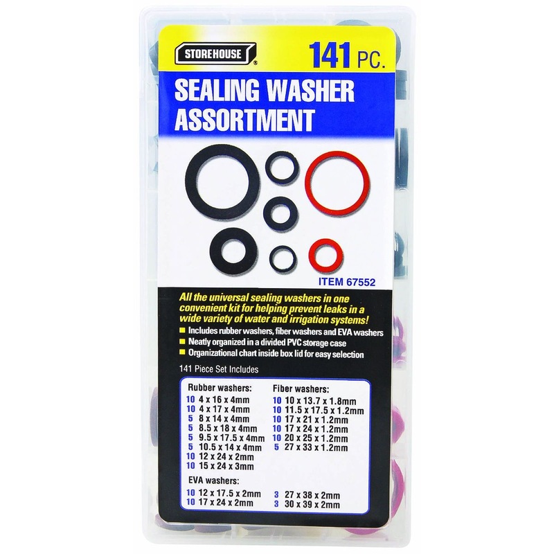 With this assortment of sealing washers, youll always have the right washer on hand. The set includes rubber washers, fiber washers and EVA washers to accommodate a wide variety of applications. The sealing washers come organized in a PVC storage case with an index chart for easy size selection.