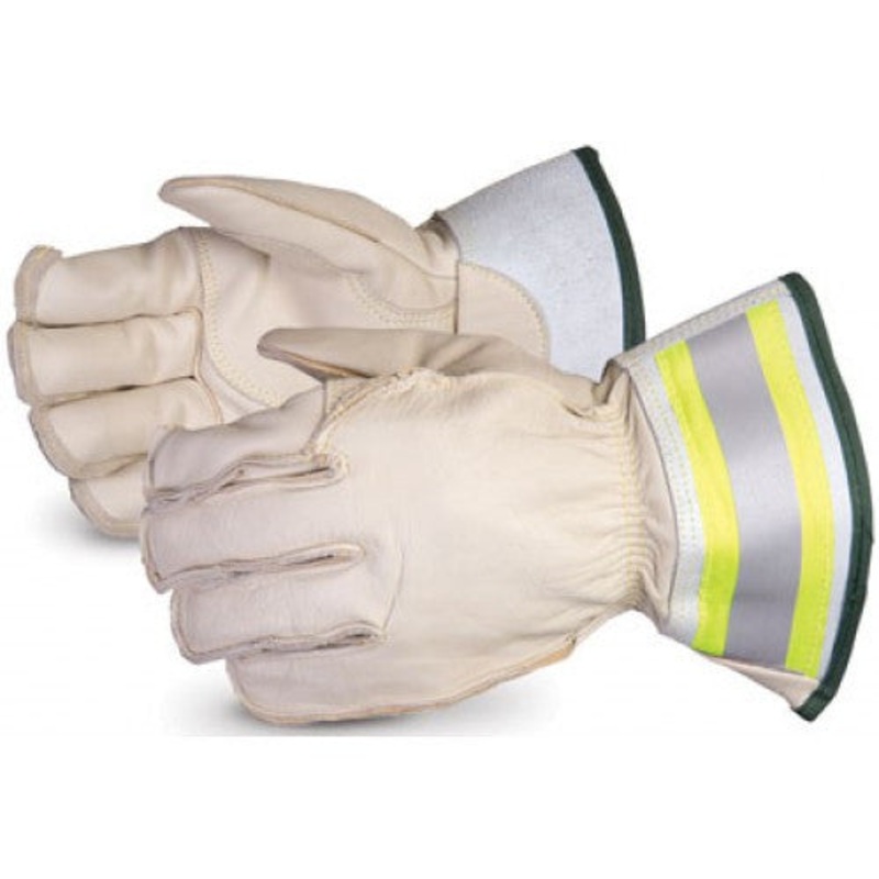 – Sewn across the back are 2″ fluorescent yellow safety cuffs.