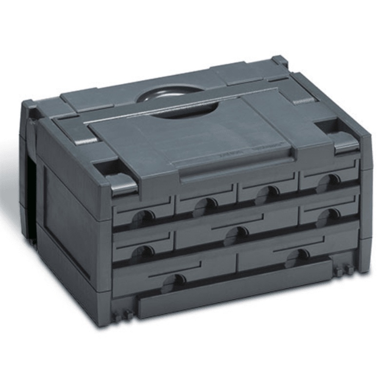 The TANOS Drawer-systainer III Variant 2 has 3 medium drawers and 6 small drawers perfect for sorting and storing parts, tools and equipment. It can be stacked with other TANOS systainer Classic lock cases (T-Loc case can be attached to the top). This conv