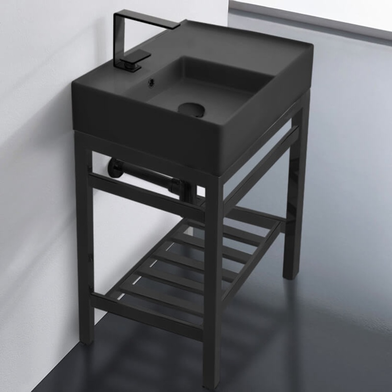 This matte black console bathroom sink is a perfect center piece for the modern style bathroom. Featuring a lower towel rack, this console stand is a perfect solution to keep your towels and other accessories tidy. Console stand is made of heavy duty stain