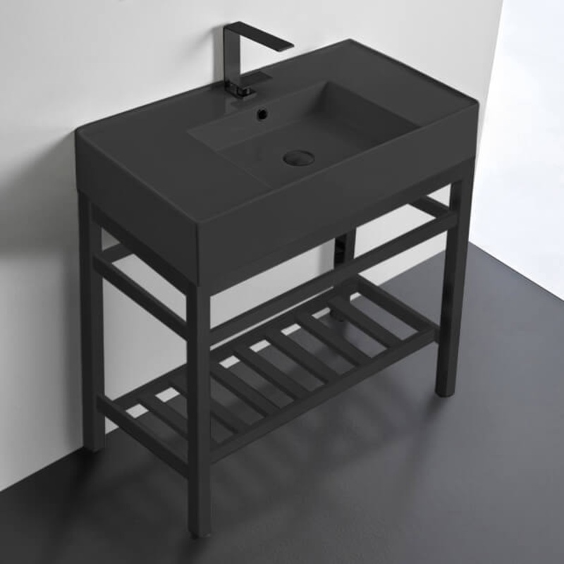 This matte black console bathroom sink is a perfect center piece for the modern style bathroom. Featuring a lower towel rack, this console stand is a perfect solution to keep your towels and other accessories tidy. Console stand is made of heavy duty stain