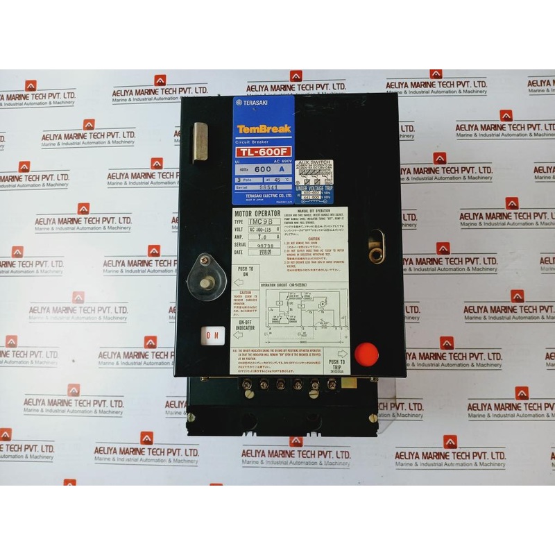 Terasaki Tl-600F Circuit Breaker Ac690V 600A Ac100-115V Ac250V 5A Dc125V 0.6ATerasaki Electric Co., Ltd.TembreakCircuit BreakTl-600FUi: Ac690V60Hz600A3 Pole At 45CYsas1221-a/KMotor OperatorType: Tmc9BVolt: Ac100~115VAmp: 1.0A2H1035SaaAux. SwitchAc480V 3A D