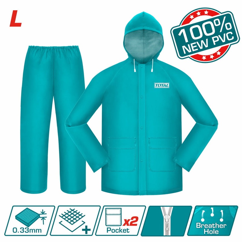 Material__PVC+polyester 100% New PVCThickness__0.33mm Size:LWaterproof, with breather holes Two down pockets with flapWith reflective strip at back
