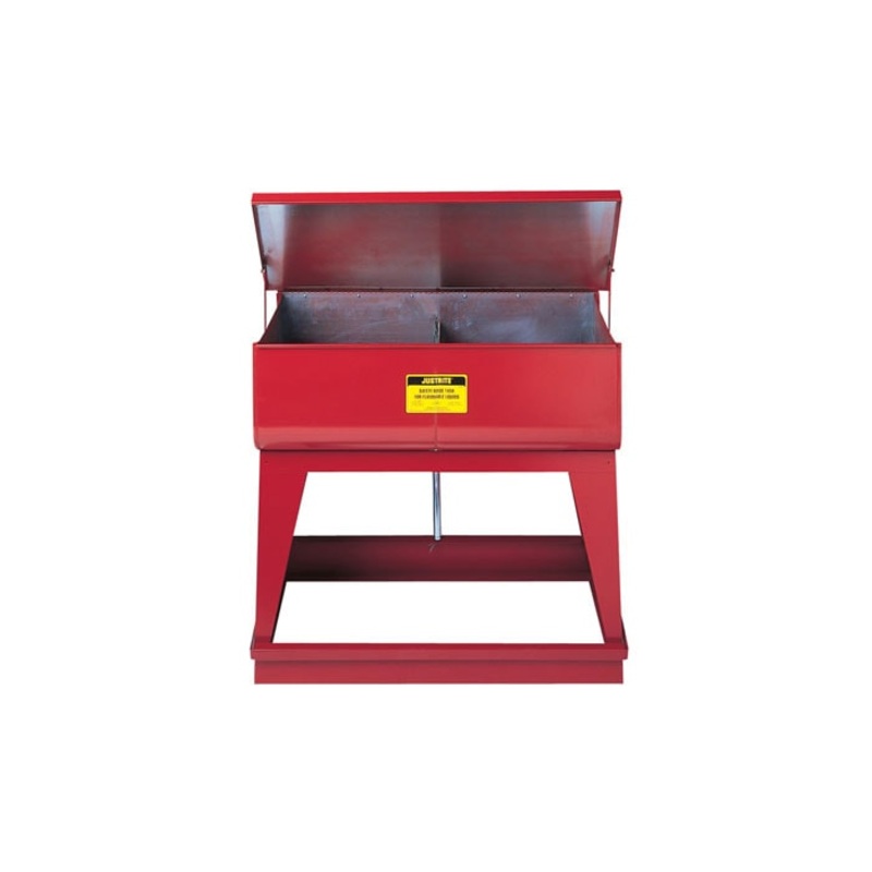 Twin Chamber Rinse Tanks allow workers to remove heavy grime on one side and do the final rinse in clean solvent on the other side. Other construction features are the same as the single chamber floor standing rinse tank. Each chamber has its own 3/4″ drain plug. Tanks are evenly divided into left and right sections.