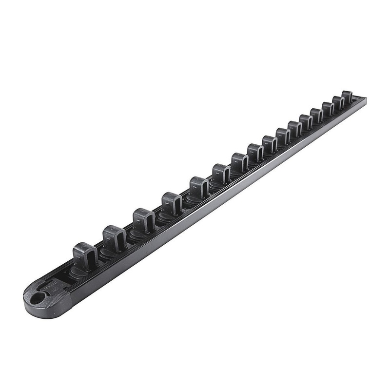 The U.S. GENERAL Magnetic Socket Rail makes it easy to keep sockets organized and ready to use. The magnetic strip holds the tray securely to any metal surface. The anodized aluminum rail and ABS socket clips hold 14 3/8 in. drive sockets. The clips slide