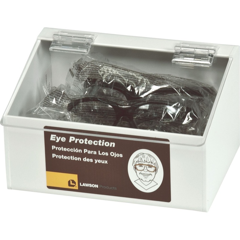 Universal Safety Dispenser with Clear Lid, 3-1/2″ High (Front), 5″ High (Back) x 9″ Wide x 6″ Deep
