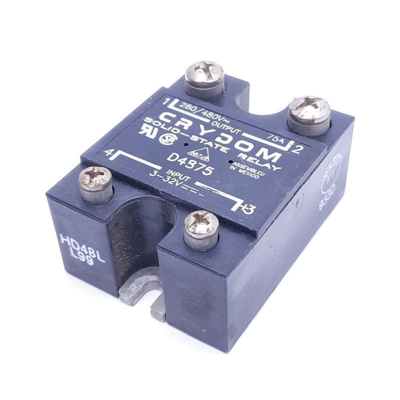 Item Condition: UsedSKU: SB-153688ST16-2-DFrom our inventory we are selling a Crydom D4875 Solid State Relay, 3-32VDC Control, 280/480VAC 75A Rating. Specifications:Model #: D4875 More Information: Crydom Solid State Relay Control Voltage: 3-32VDC Contact