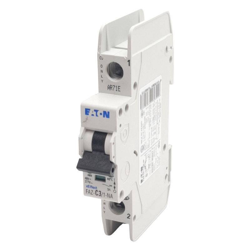 Item Condition: UsedSKU: SB-201602ST44-2-FFrom our inventory we are selling a Eaton FAZ-C3/1-NA-SP Circuit Breaker, 1-Pole, 3A 48VDC/277VAC, DIN Rail. Specifications:Model #: FAZ-C3/1-NA-SP More Information: Eaton Circuit BreakerPoles: 1Rated Voltage: 48VD