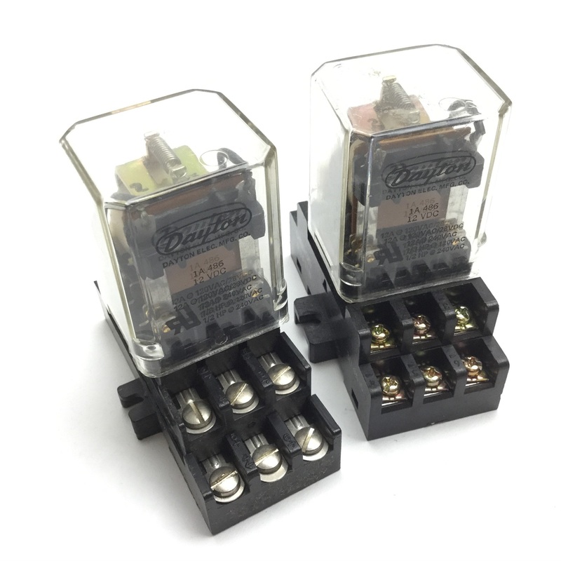 From our inventory we are selling a Lot of 2 Dayton 1A486 Ice Cube Relay, 2-Pole, Coil: 12VDC, With Sockets.