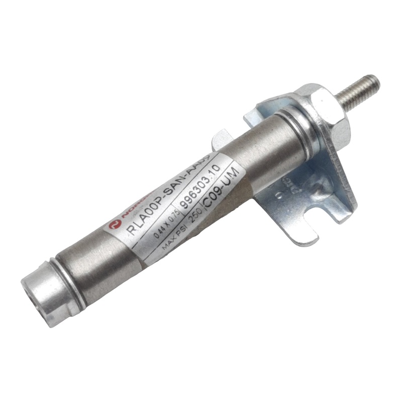 From our inventory we are selling a Norgren RLA00P-SAN-AA00 Pneumatic Cylinder, 0.44in Bore, 0.75in Stroke, #10-32.