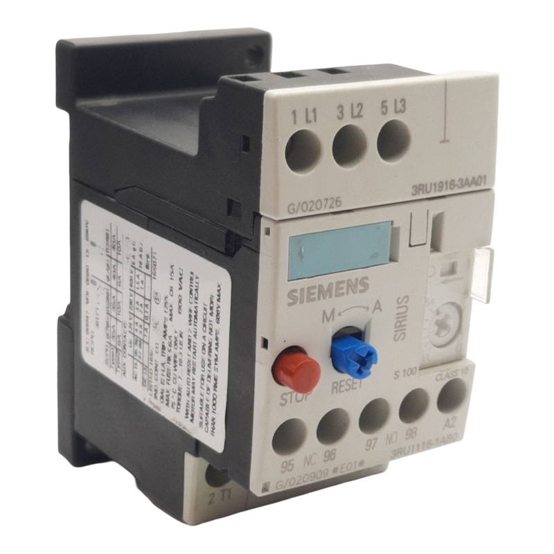 Item Condition: UsedSKU: SB-199211ST28-2-HFrom our inventory we are selling a Siemens 3RU1116-1AB0 Thermal Overload Relay, 3-Pole 1NO/1NC, 690VAC 1.6A. Specifications:Model #: 3ZX1012-0RU11-1AA1,3RU1116-1AB0, 3RU1916-3AA01 More Information: Siemens Thermal