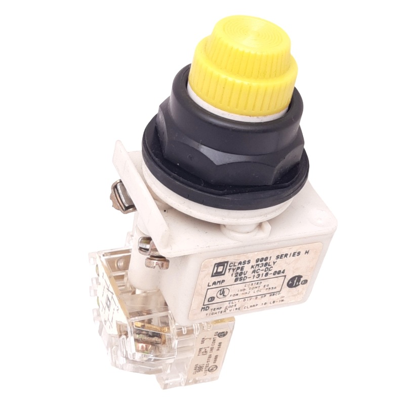 Item Condition: UsedSKU: SB-202708ST21-3-JFrom our inventory we are selling a Square D 9001KM38LY Yellow Illuminated Pushbutton, 30mm, 1NC 1NO, 600V 10A Max. Specifications:Model #: 9001KM38LYMore Information: Square D Yellow Illuminated Push Button Moment