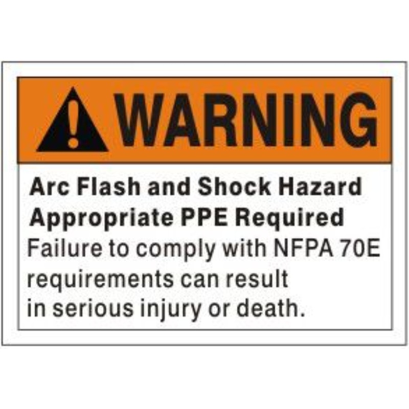 Warning Arc Flash And Shock Hazard Appropriate PPE Required Failure To Comply With NFPA 70E Requirements Can Result In Serious Injury Or Death. Sign, Fiberglass, Black/Orange/White, 7x10"