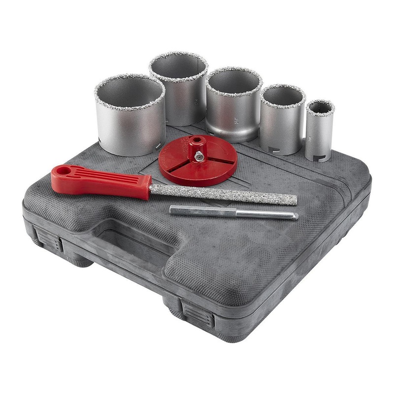 The WARRIOR 9 piece carbide grit hole saw kit drills holes in hard, abrasive or extra-thin materials like ceramic, plastic or fiberglass. Each carbide hole saw is self-sharpening for maximum cutting life.
