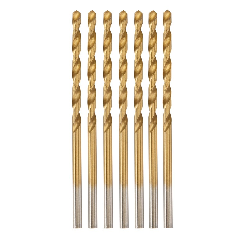 High speed steel titanium drill bits run cooler, drill smoother and last up to three times longer than a standard drill bit set. The titanium coating protects the steel bit for extended performance. The drill bit set features regular 118 deg. tips for drilling in wood, metal, plastic and most other materials.