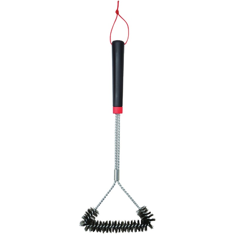 This three-sided grill brush is made to remove grease and debris from cooking grates of all sizes. The handle design provides a secure grip when brushing off stuck-on food or cleaning tight spaces. Use this grill brush to clean your grates before each use