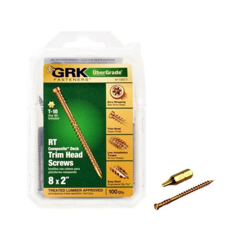 About This ProductThe #8 x 2 in. Finish Trim Screws (100 per Pack) are designed with a self-tapping feature and a Zip-Tip to minimize the risk of splitting in most materials. These screws are suitable for various trim and detailed carpentry tasks. Their sm