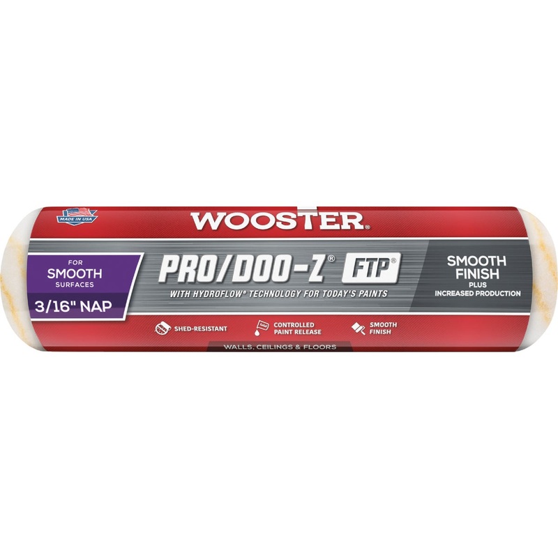 Shed-resistant and high density for today's paints: flat, eggshell, satin, semigloss, gloss, enamels, primers, urethanes and epoxies. HydroFlow technology provides controlled release to improve paint flow. Wooster-exclusive fabric with double golden pinstr