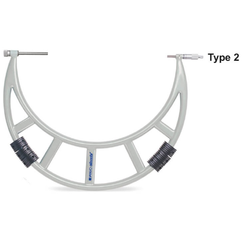 YAMAYO INTERCHANGEABLE OUTSIDE MICROMETER 900-1000MM TYPE 2FEATURESWide measuring range with interchangeable anvils.Satin chrome scale.Durable frame with insulated grips.Carbide tipped measuring faces.Provided with Ratchet stop for constant force.Supplied