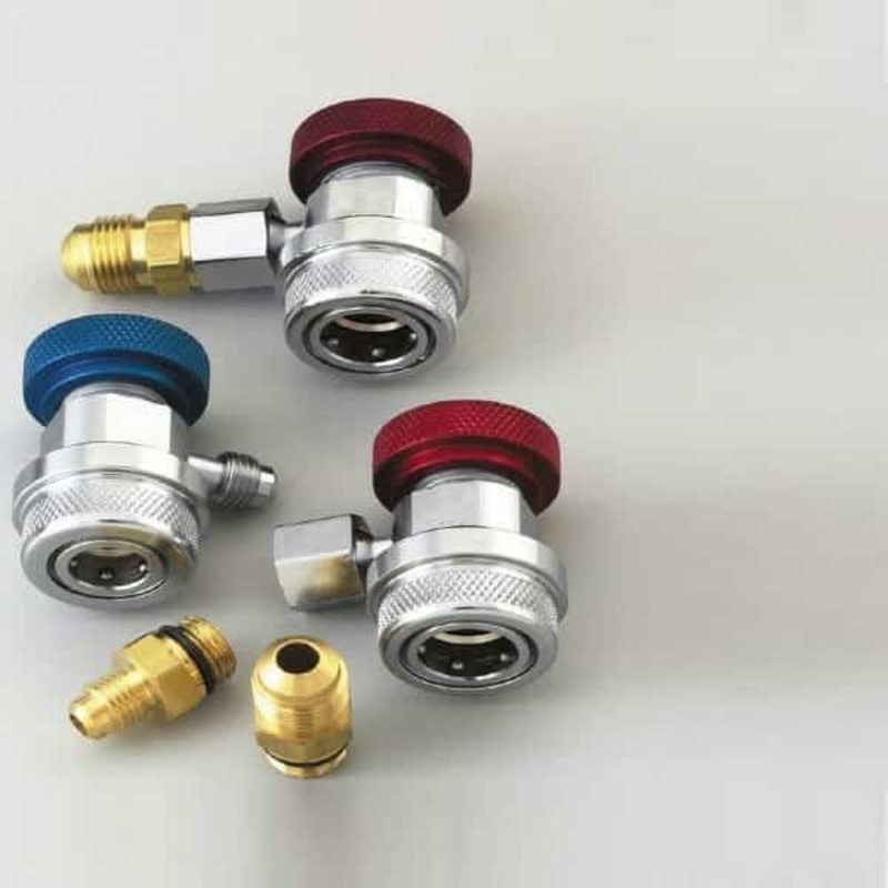 The Yellow Jacket 41337 Hi-side x 1/4 Male Flare R-134a Coupler has some features. Its quick and easy to connect and disconnect. Featured is a control valve for access to systems even at working pressures. Also, it has an integral safety sleeve that holds the coupler securely to service the port. Also, it has the highest flow characteristics. As well as a low profile for tight applications. Lastly, its made in the USA.