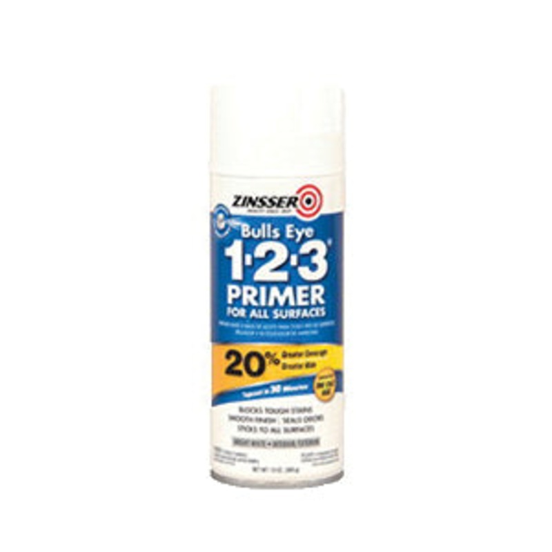 ZINSSER Spray Primer, 13 oz Net Content, Latex, Oil Base, White, Odor/Scent: Solvent Like, Composition: Acetone, Naphtha, Petroleum, Hydrotreated Light, Propane, Titanium Dioxide, n-Butane, 2,2,4-Trimethyl-1,3-Pentanediol Diisobutyrate, Solvent Naphtha, Li